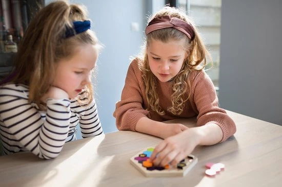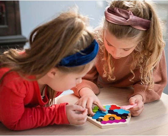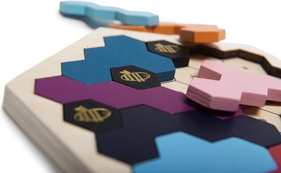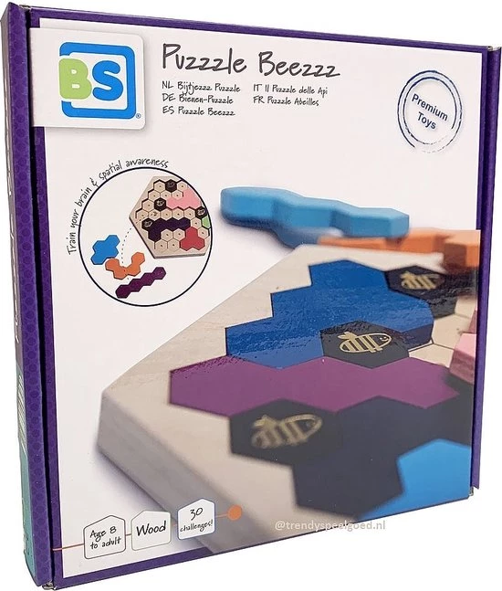 Stel je concentratie en ruimtelijk inzicht op de proef met deze puzzel! Het spel bevat 30 kaarten met uitdagingen. Kies er ??n en plaats de bijen en puzzelstukken zodat de hele bijenkorf wordt gevuld.