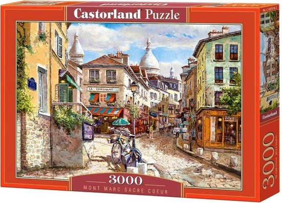 Deze puzzel van drieduizend stukjes is een echte uitdaging voor de puzzelliefhebber! De afbeelding is een prachtig schilderij van een typische Franse wijk.