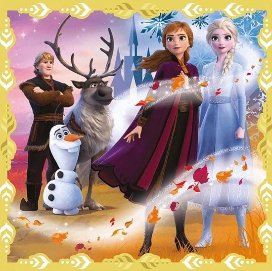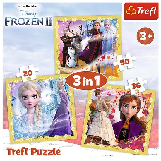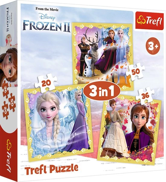 Heb jij een Frozen fan thuis zitten? Met deze Disney Frozen Puzzel 3 in 1 met 20, 36 en 50 stukjes hebben zij gegarandeerd veel puzzel-plezier! Dit pakket bestaat uit drie losse puzzels van 20, 36 en 50 stukjes. Op deze manier kan je kind met de makkelijkste beginnen en steeds zich verder ontwikkelen door met meer stukjes te puzzelen. Ook hartstikke leuk als je meerdere kinderen hebt en iedereen een eigen Frozen puzzel kan leggen! De puzzel zijn geschikt voor de leeftijd van 3+. Op de puzzels zijn verschillende bekende karakters van Frozen afgebeeld, onder andere Anna, Elsa en Olaf.