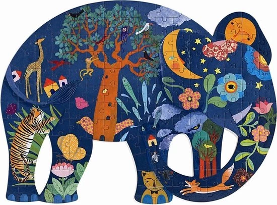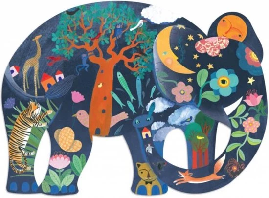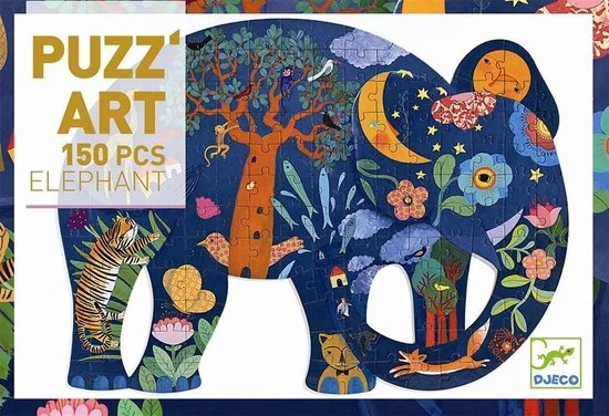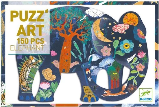 Deze prachtige, artistieke kinderpuzzel ‘Elephant’ uit de Puzz’Art serie van Djeco heeft geen randen of hoeken. Puzzel in plaats daarvan een groot silhouet van een olifant, vol details van de jungle. Puzzelen wordt heel andere met dit unieke formaat. Een uitdagende puzzel voor jong en oud en rijk aan kleur.