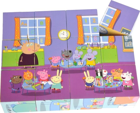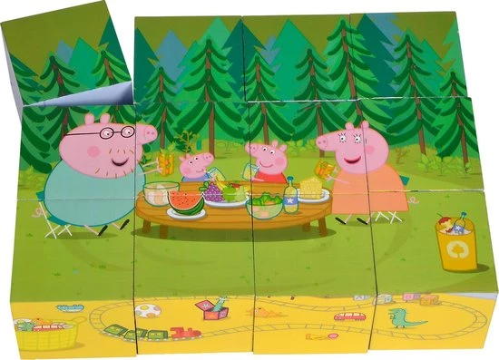 Peppa Pig is een liefdevol gemaakte cartoonreeks voor Britse kinderen die zorgt voor onderhoudend leren en veel plezier voor de kleintjes. Afhankelijk van hoe je de stenen draait, maakt de Peppa Pig Eichhorn-beeldkubus een van de zes motieven uit de wereld van Peppa Pig. Met de twaalf bouwstenen kan een verscheidenheid aan motieven worden gemaakt met Peppa Pig, of het nu gaat om een picknick in het bos of een ijsje op de tribune. FSC? 100% 3Y+ PEPPA PIG ? ASTLEY BAKER DAVIES LTD / ENTERTAINMENT ONE UK LTD 2003. Alle rechten voorbehouden.