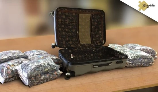 De stukjes zijn verpakt in zakken van 2.000 stukjes. De puzzel wordt geleverd in een koffer.
