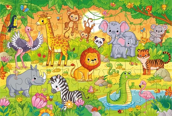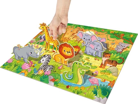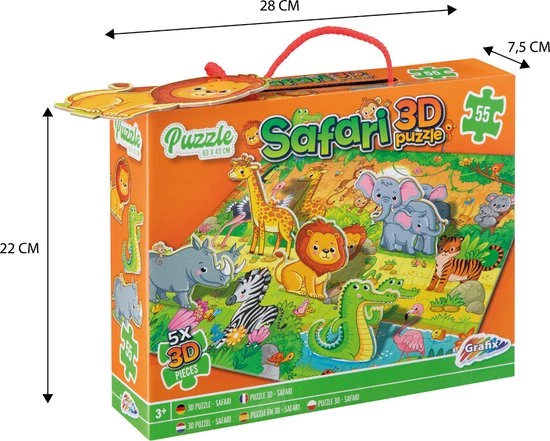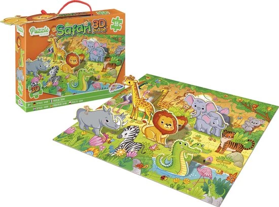 Grafix 3D Puzzel Safari | Legpuzzel Voor Kinderen | 55 Puzzelstukjes + 5 3D Stukjes | Puzzelen Vanaf 3 Jaar