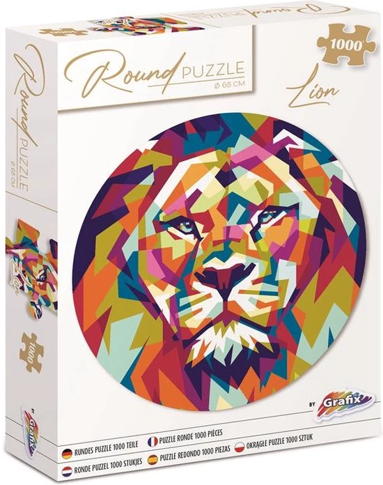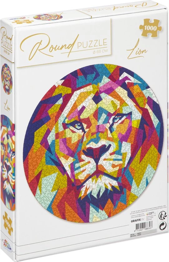 Anders dan de traditionele rechthoekige puzzel, is de ronde Leeuwen puzzel van Grafix. De puzzelstukjes zijn erg goed gesneden waardoor de puzzelstukjes mooi in elkaar passen. Daarnaast zijn de puzzelstukjes ”Premium Pigment” bedrukt en glad oppervlak, waardoor de puzzel een prachtig kleureffect heeft.