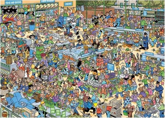 Jan van Haasteren De Speelgoedwinkel met 1000 Stukjes is een van de nieuwe puzzels van Jan van Haasteren. In deze Speelgoedwinkel verloopt niet alles even soepel.De Speelgoedwinkel van Jan van Haasteren puzzel met 1000 stukjes voor de echte Jan van Haasteren fans! Zodra je Jan van Haasteren de Speelgoewinkel met 1000 Stukjes begint te puzzelen stuit je op het ene na het andere hilarische tafereel.