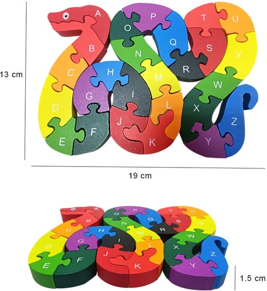 Met deze kleurrijke slang puzzel leert u zowel tellen, het alfabet en pasvormen in een keer!