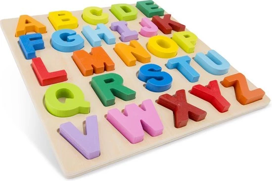 Een prachtige New Classic Toys alfabet puzzel met verhoogde letters in heldere kleuren. Gemakkelijk voor kleine handjes om de letters eruit te pakken en weer terug te kunnen plaatsen in de puzzel. Deze puzzel helpt mee aan de herkenning van de letters, kleuren en draagt bij aan de ontwikkeling van de fijne motoriek. Deze houten puzzel van New Classic Toys is onderdeel van de Educational productlijn. Bouwen, stapelen, sorteren en tellen. Spelen en leren gaan hand in hand met de collectie “Educational” van New Classic Toys.