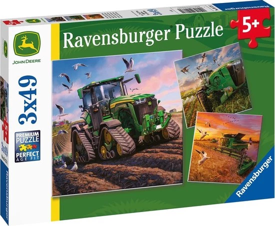 Ontsnap uit de realiteit en stap in de wereld van Ravensburger puzzels. Tijdens het puzzelen ontdekken kinderen hun grootse vaardigheden. Echt puzzelen met 49 stukjes. Vanaf vijf jaar kunnen kinderen een puzzel van 49 stukjes maken. De drie afbeeldingen in 1 doos zorgen voor de nodige afwisseling. Dankzij de met de hand gemaakte stansmessen is de vormvariatie van de stukjes oneindig. Kinderen vanaf 5 jaar zullen genieten van de John Deere in actie in actie puzzels met 49 stukjes. Ravensburger puzzels met 49 stukjes met als thema John Deere.