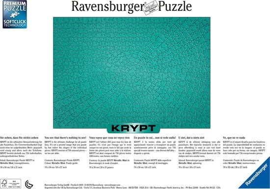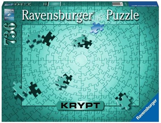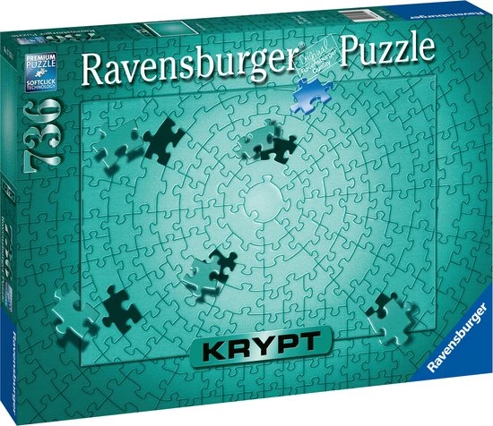 De metallic mint Krypt puzzel van Ravensburger bestaat uit 736 stukjes met een unieke vorm.