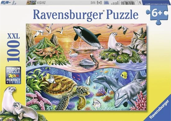Ontsnap uit de realiteit en stap in de wereld van Ravensburger-puzzels. Tijdens het puzzelen ontdekken kinderen hun grootse vaardigheden. XXL-puzzels voor XXL-puzzelplezier. De XXL-grote puzzelstukken zijn eenvoudiger te leggen. Het resultaat is een kunstwerk op posterformaat dat in geen enkele kinderkamer misstaat. Dankzij de met de hand gemaakte stansmessen is de vormvariatie van de stukjes oneindig. Kinderen vanaf 6 jaar zullen genieten van de Bonte oceaan puzzel met 100 stukjes met als thema onderwaterleven.