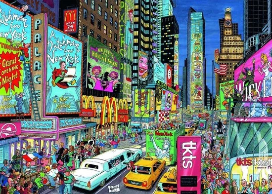 Tegen het vallen van de avond begint op Times Square het echte leven! Honderden mensen verdringen zich bij de glazen ticketshop om een kaartje te bemachtigen voor ??n van de vele Broadway musicals. In het Palace Theatre is er vanavond de premi?re van een Nederlandse Musical A Dutchman in New York, waar vele toeschouwers op af komen. De Nederlandse producer probeert er een echt Hollands feestje van te maken. Daar hoort natuurlijk ook haring bij, en onze vaste vrienden Bob en Nancy mogen als eerste proeven. Hoe dat afloopt zie je als je de puzzel hebt gemaakt!