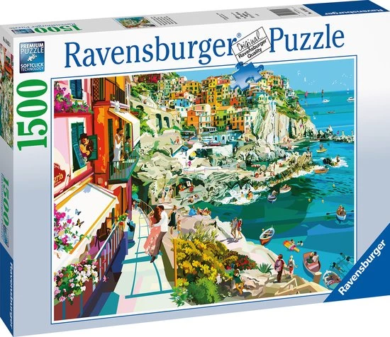 Ontsnap uit de realiteit en stap in de wereld van Ravensburger-puzzels. Heb je al wat ervaring met puzzels van 1000 stukjes? Dan wordt het tijd voor een nieuwe uitdaging: onze puzzel van 1500 stukjes! Als je op zoek bent naar langer puzzelplezier, maar met een gemiddelde moeilijkheidsgraad, dan is dit de juiste puzzel voor jou. Dankzij de met de hand gemaakte stansmessen is de vormvariatie van de stukjes oneindig. Jong en oud zullen genieten van deze Romantiek in Cinque Terre puzzel met 1500 stukjes. Ravensburger is dan ook marktleider in veelzijdigheid en kwaliteit en heeft voor alle puzzelfans de juiste uitdagingen en afbeeldingen.