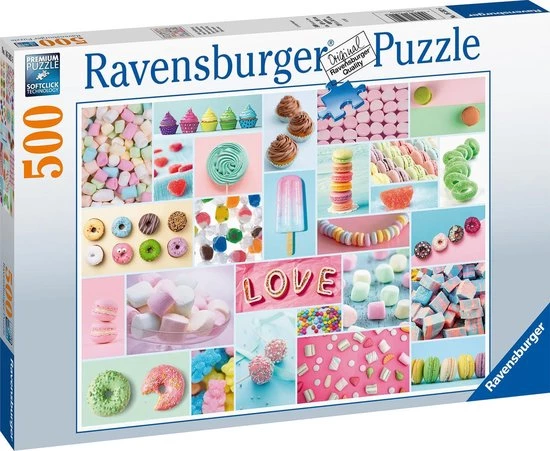 Ontsnap uit de realiteit en stap in de wereld van Ravensburger-puzzels. Deze Ravensburger puzzel van 500 stukjes is de perfecte eerste stap naar de wereld van de grote puzzels. Ideaal ook voor puzzelaars die alleen op zoek zijn naar een puzzel voor tussendoor. Dankzij de met de hand gemaakte stansmessen is de vormvariatie van de stukjes oneindig. Jong en oud zullen genieten van deze Zoete verleiding puzzel met 500 stukjes.