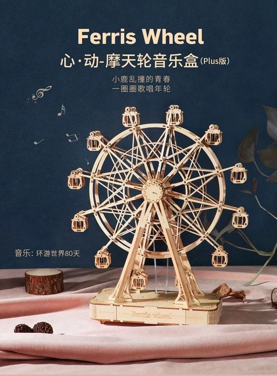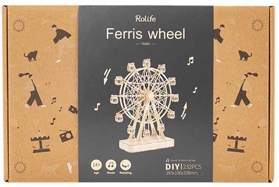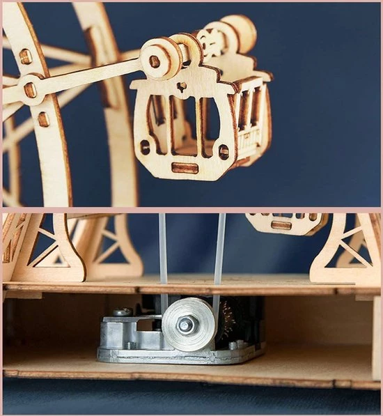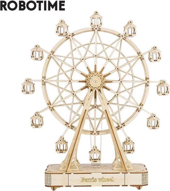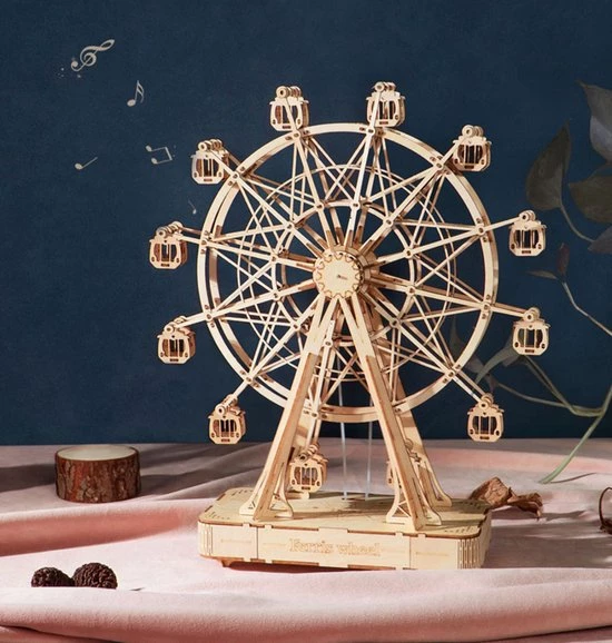 Deze 3D-puzzel van Robotime is fantastisch en uniek! Robotime is gespecialiseerd in het ontwerpen, produceren en verkopen van houten puzzels en educatief speelgoed voor kinderen en volwassenen. Deze houten reuzenrad bestaat uit nauwkeurige, lasergesneden stukken en kunnen eenvoudig in elkaar worden gezet. Ook ideaal om te geven als cadeau! De uitvoering draait als een echt reuzenrad en tijdens het draaien komt er ook nog eens muziek uit.