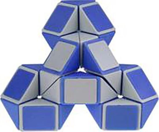 Deze Magic Snake bestaat uit verschillende delen die met een stevig elastiek zijn verbonden. Door het draaien van de verschillende delen neemt de slang steeds weer een andere vorm aan.