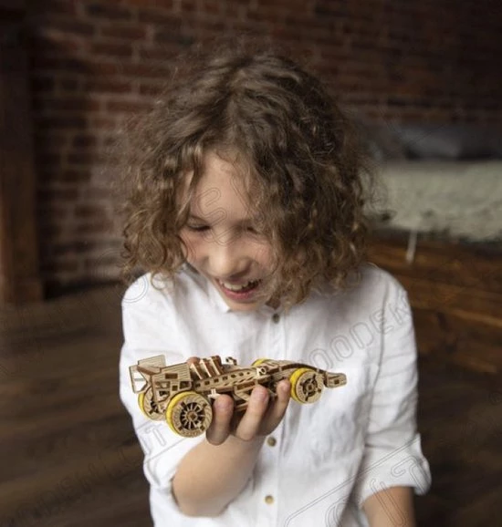 Ben je dol op auto?s en verzamel je graag verschillende soorten miniatuurauto?s? Dan mag deze bolide raceauto niet in je collectie ontbreken. Wat deze auto speciaal maakt is dat hij compleet van hout is gemaakt. De houten stukken zijn lasergesneden en passen als een puzzel in elkaar. Je kunt de puzzel alleen of samen met anderen in elkaar zetten.